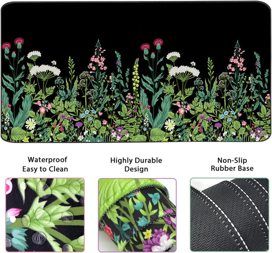 Keyboard Mouse Pad Set, Extended Mouse Pad+Keyboard Wrist Rest Support, Memory Foam Ergonomic Easy Typing, 3Pcs (35.4×15.7 In) Desk Pad Set for Home Office Study Game - Weeds
